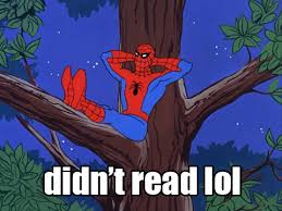 Ludzie często wrzucają też tego mema dla czystej beki. Mnie na przykład bawi, kiedy przeczytałem dłuższy (na warunki internetu 2xA4) tekst z fajną puentą, a w komentarzu widzę "Didn't read. LOL". Mnie tam może rozbawić taki ironiczny typ poczucia humoru, zwłaszcza kiedy się go nie spodziewam. Gorzej, jeśli ktoś tego używa serio i dosłownie. Ale mam jeszcze wiarę w ludzkość.